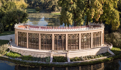 Il giardino romantico di Villa Bolasco, così come lo si vede oggi, nasce da un progetto di Giambattista Meduna, che tra il 1852 e il 1865 ne ridefinì l’impianto e riorganizzò l’area in cui in precedenza sorgevano il complesso architettonico seicentesco “Il Paradiso” e un giardino all’italiana. Di entrambi non c’era già più traccia quando a Meduna fu affidata la riprogettazione dell’intero complesso, ma alcune delle sculture del giardino all’italiana, attribuite a Orazio Marinali, sono state reimpiegate nella splendida Cavallerizza che si sviluppa nell’area più a nord del giardino. Oggi il parco è popolato da più di mille alberi e da una ricca fauna; ospita al suo interno un lago, alimentato dalle acque del torrente Avenale, e due piccole isole, per un totale di otto ettari di superficie, in cui si trovano anche la Cavallerizza, una cavana, una torre colombara e la bellissima serra ispano-moresca.